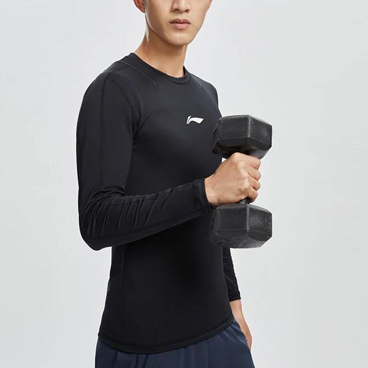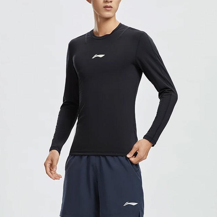 Футболка для фитнеса Li Ning Plain с круглым вырезом и длинным рукавом, с логотипом бренда, черная, AUDR091-1