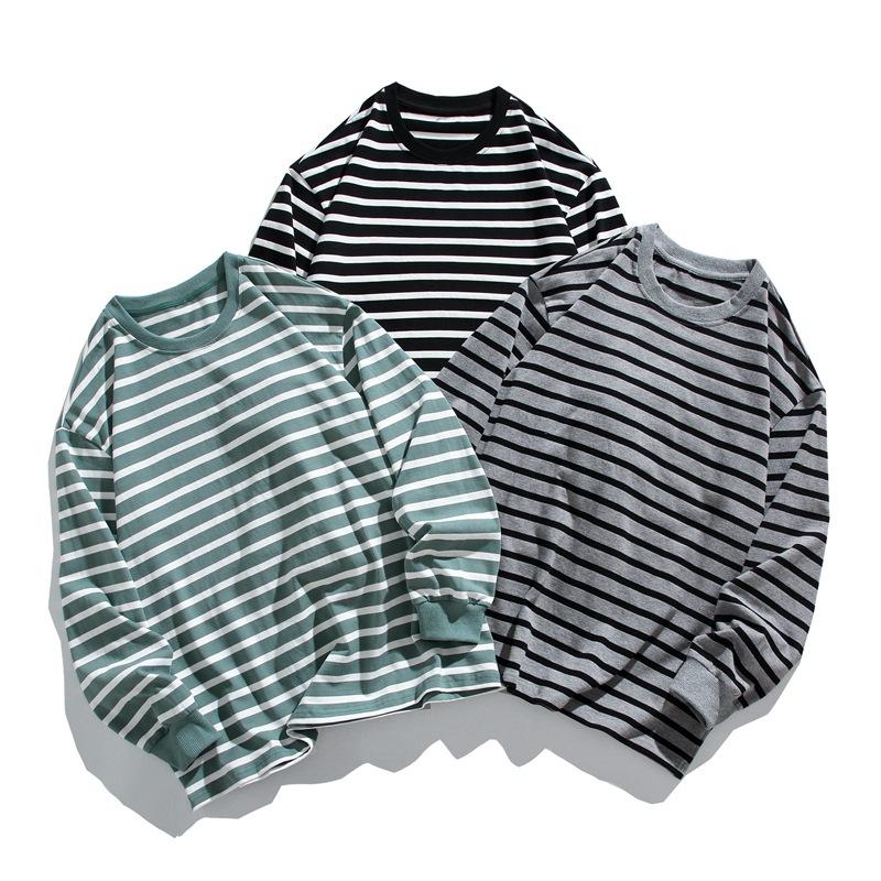 Весна и осень Новый мужской корейский стиль круглый вырез контрастного цвета полосатый длинный рукав чистый хлопок пара интернет знаменитости тот же стиль топ