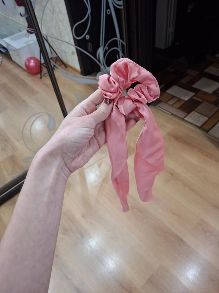 Резинка для волос с лентами, очень красивый цвет, 100%соответствие фото. Покупала под платье и попала в тон отлично. Спасибо продавцу.