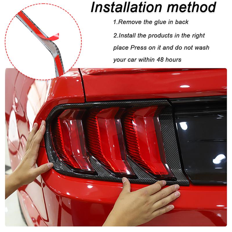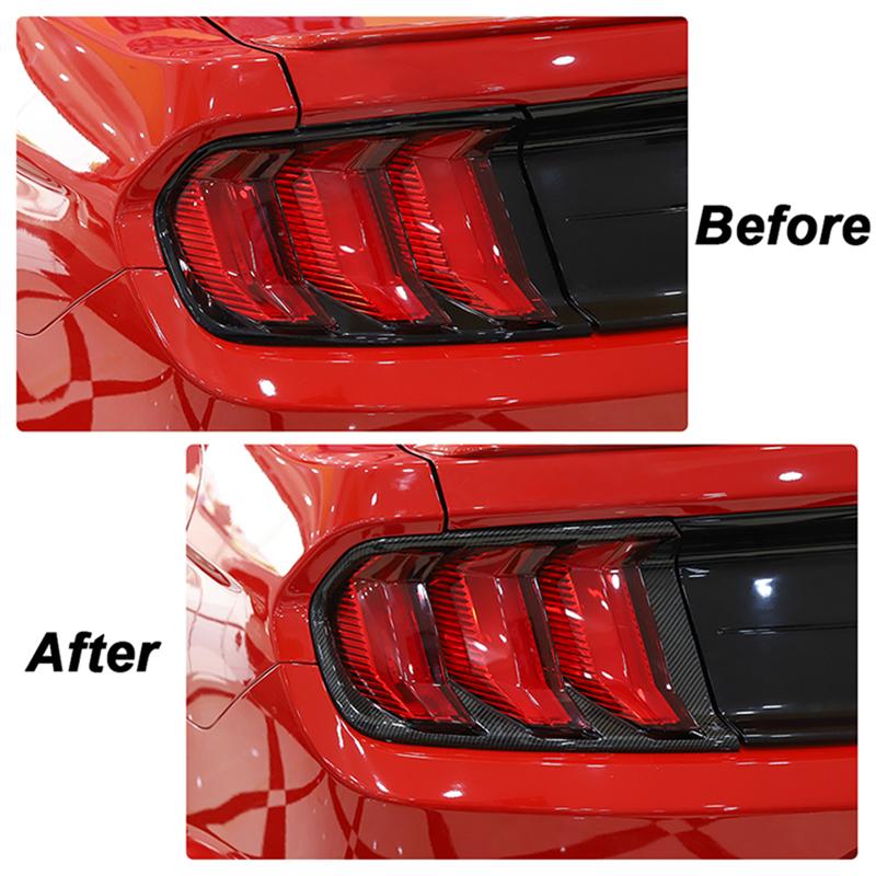 Модный узор из углеродного волокна задних фонарей украшает лицевые панели, подчеркивает спортивный стиль спортивного автомобиля, повышает уникальность и агрессивность вашего Мустанга.