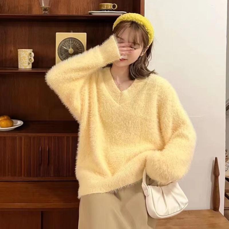 Новый осенне-зимний мягкий свитер с длинным рукавом для женщин, модные свободные повседневные вязаные свитера с V-образным вырезом, женские элегантные винтажные джемперы 25291