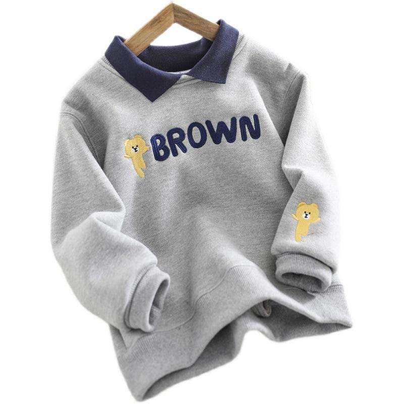 Зимняя толстовка с капюшоном из бархата для мальчиков, рубашка-поло с длинными рукавами, детская одежда средних и больших размеров, имитация двухкомпонентного топа