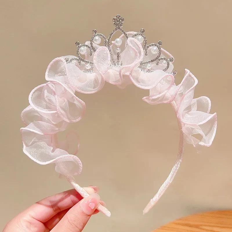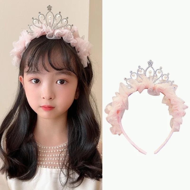 1 шт. Детская милая повязка на голову принцессы для девочки, сетчатый жемчужный обруч для волос в виде короны для детей, головной убор для укладки волос на день рождения