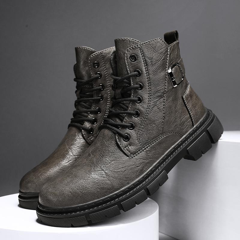 МодаЗимние Высокие ботинки Модные ботинки Кожаные Ботильоны Двойная боковая молния Нескользящая обувь Мужские Ботинки на платформе Zapatos De Hombre