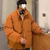 Зимняя новая мужская куртка-пуховик, свободная, без капюшона, с воротником-стойкой, в гонконгском стиле, молодежная, утолщенная, теплая, однотонная, повседневная куртка