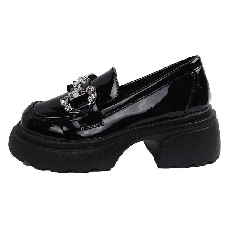 Черные маленькие кожаные туфли женские летние туфли Hundred Matching Shoes толстые туфли Lefou французские туфли на плоской подошве