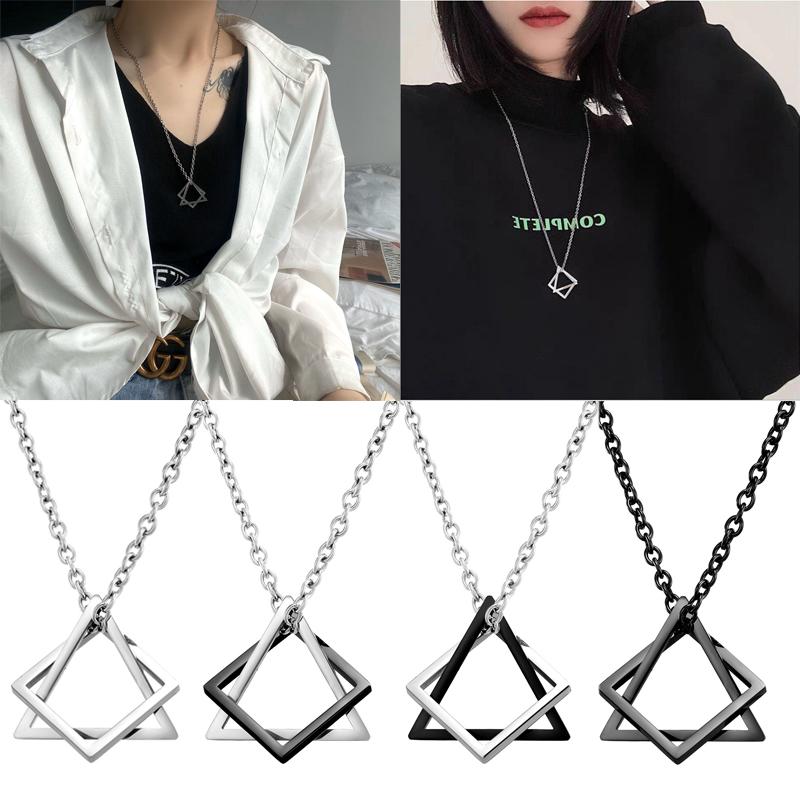 Hip Hop Black Silver Alloy Triangle Fashion 1Pc Men Women Modern Geometric Stacking Square Pendant Necklace Couple Necklace Unisex Jewelry Accessory — купить товар онлайн с бесплатной доставкой по всему миру!