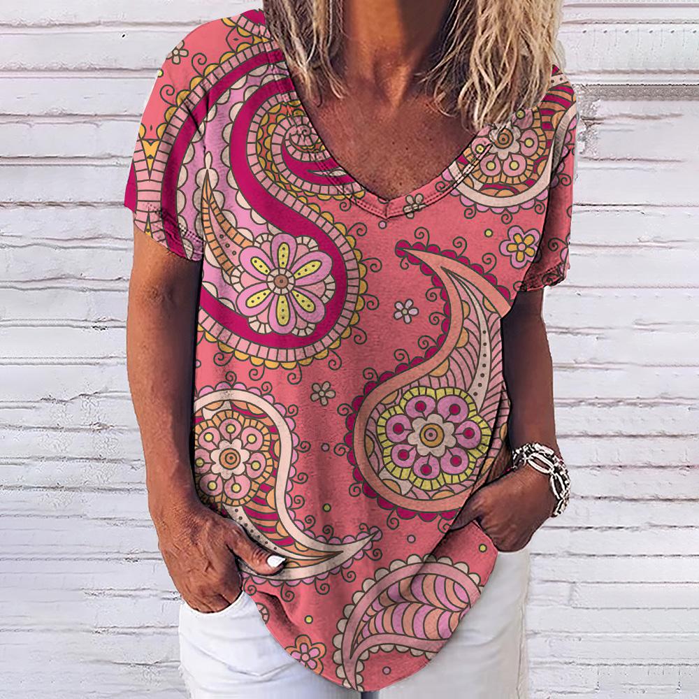 Винтажный принт топ женский с короткими рукавами уличная летняя футболка женская мода повседневная футболка с V-образным вырезом Y2k свободная женская одежда — купить товар онлайн с бесплатной доставкой по всему миру!