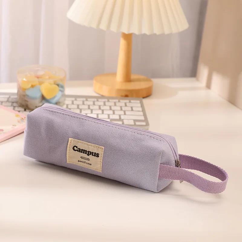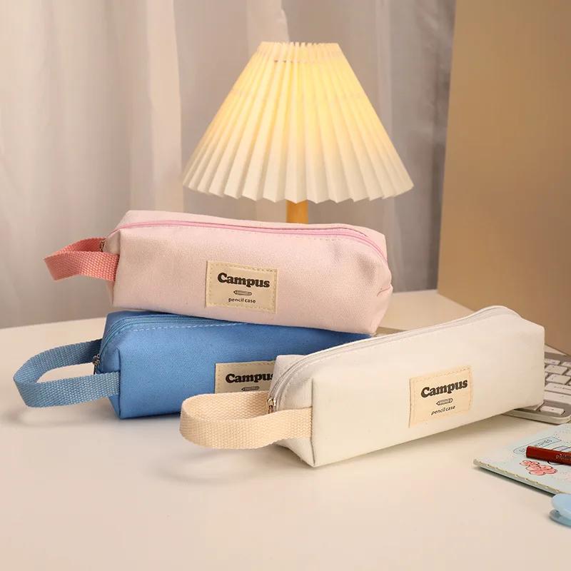Сумка для карандашей конфетного цвета, симпатичная сумка для хранения для мальчиков и девочек, холщовый пенал для канцелярских принадлежностей, сумка для карандашей в школу