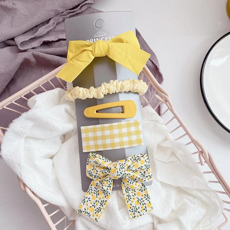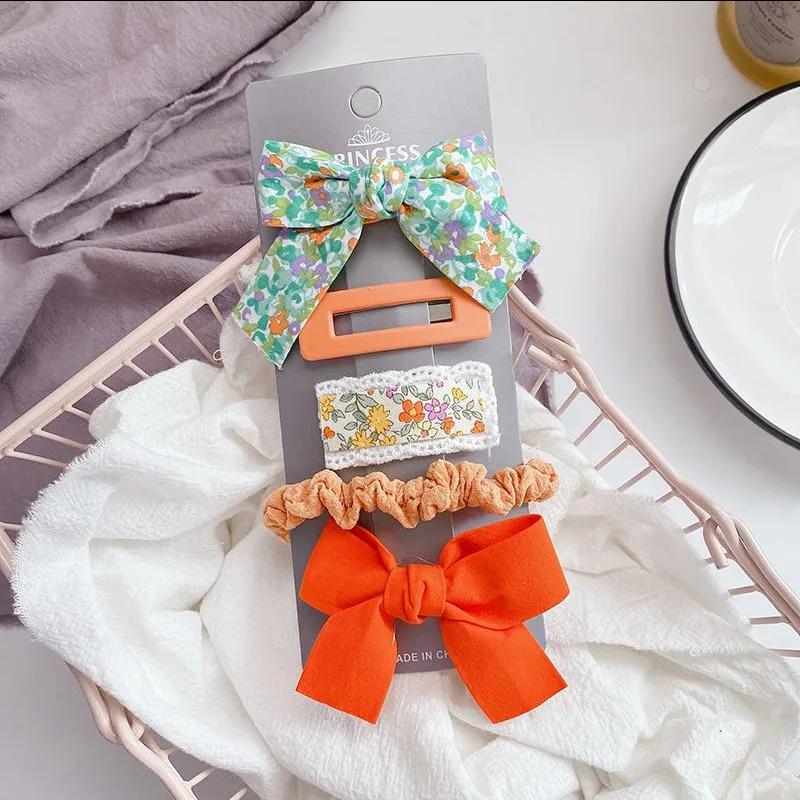 Милая тканевая заколка для волос с цветочным принтом в виде сердца и банта для девочки, набор с боковой застежкой, симпатичные корейские повязки на голову для девочек, заколки для волос