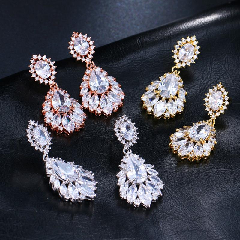 Модные серьги-гвоздики в форме капли воды, свадебные серьги с цирконием, роскошные женские подарки для банкета, универсальные аксессуары, классические стили