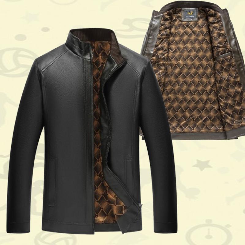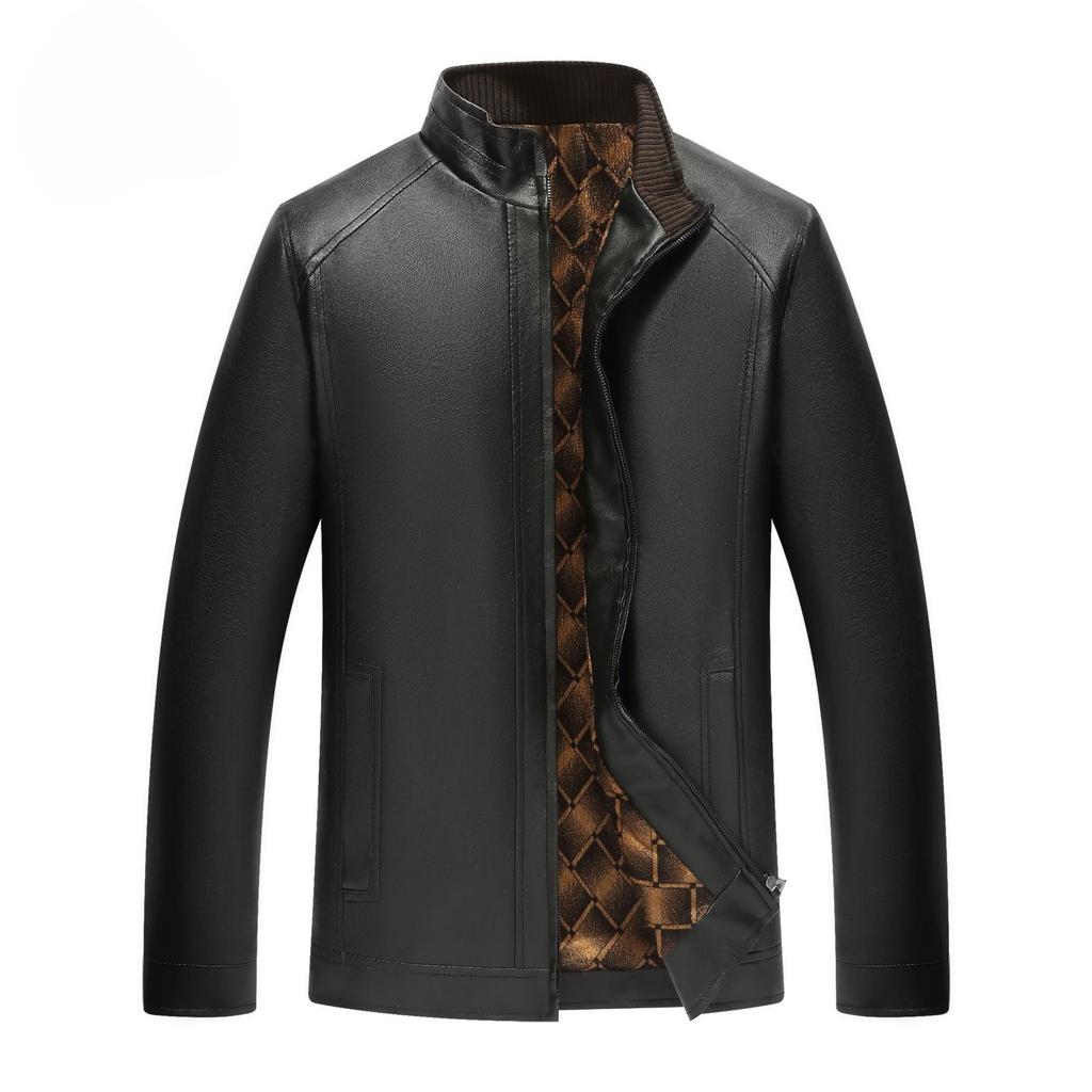 Мужская классическая куртка из искусственной кожи с воротником-стойкой, зимние теплые флисовые льняные куртки