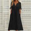 Женская мода повседневное однотонное платье с круглым вырезом и пуговицами с открытыми плечами и коротким рукавом с карманом — купить товар онлайн с бесплатной доставкой до всему миру!