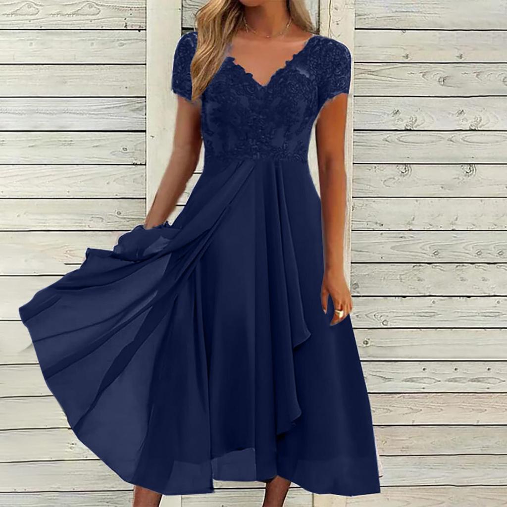 Платья для женщин Элегантное кружевное шифоновое струящееся платье Вечернее платье с v-образным вырезом и коротким рукавом Кружевное шифоновое платье
