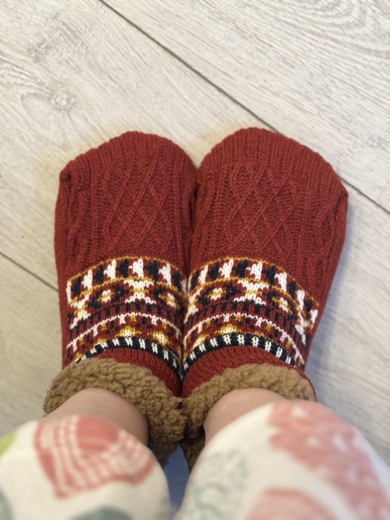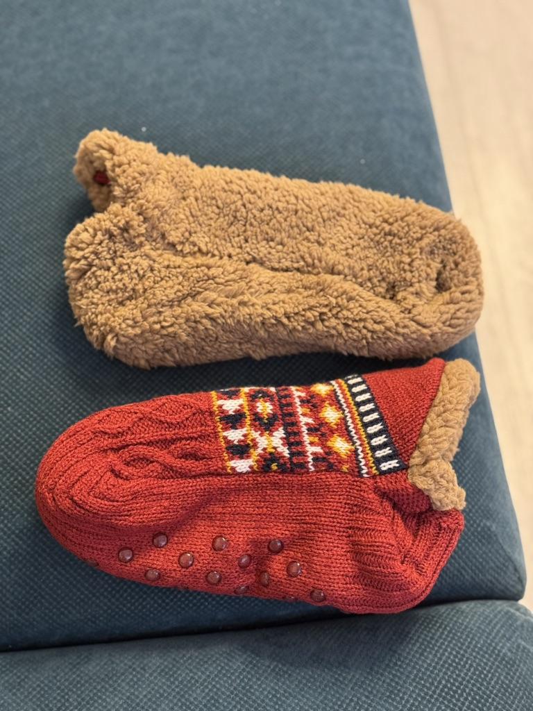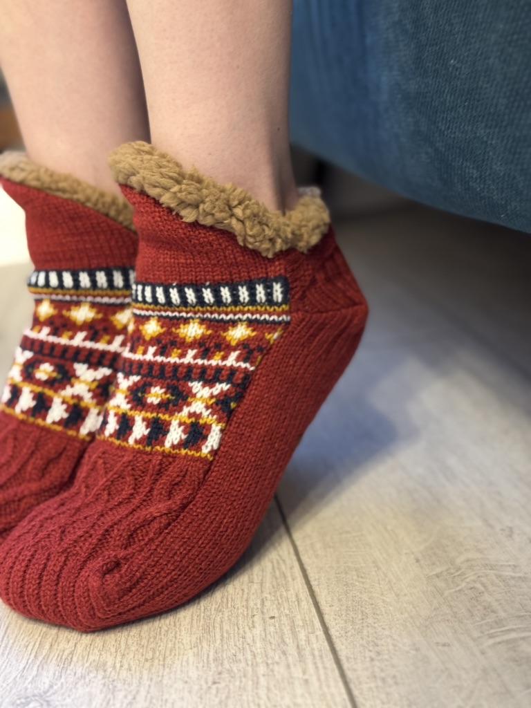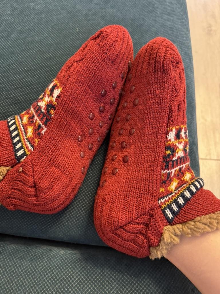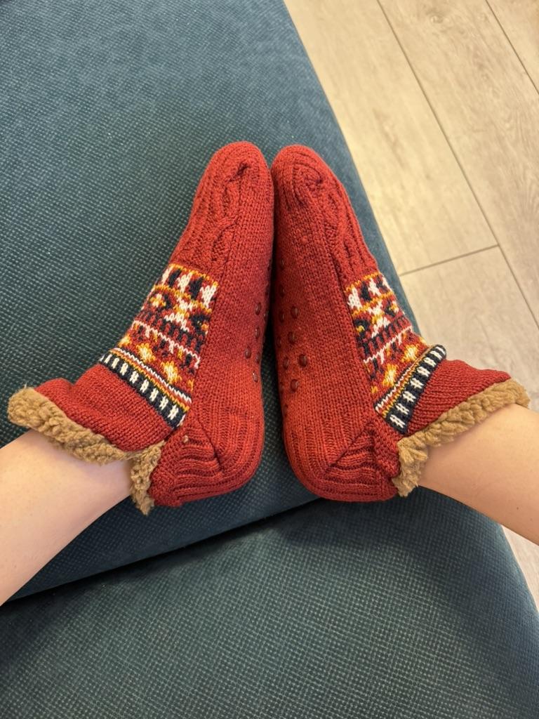 Носки-тапочки с начёсом 🔥 Очень мягкие и тёплые. Ногам в них приятно и уютно. Сидят идеально по ноге. Внутри тёплый толстый мех. Мех не лезет. На подошве прорезиненные кружочки, которые не дают скользить. Полы у нас холодные, в носках совсем не мёрзнут. Взяла размер 35-39 на стопу 25 см., сели отлично 👍 Доставка около месяца. Трек отслеживался. К покупке рекомендую 👍