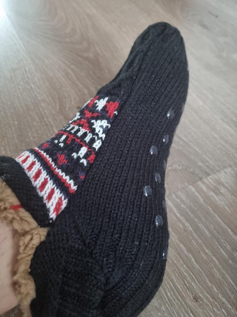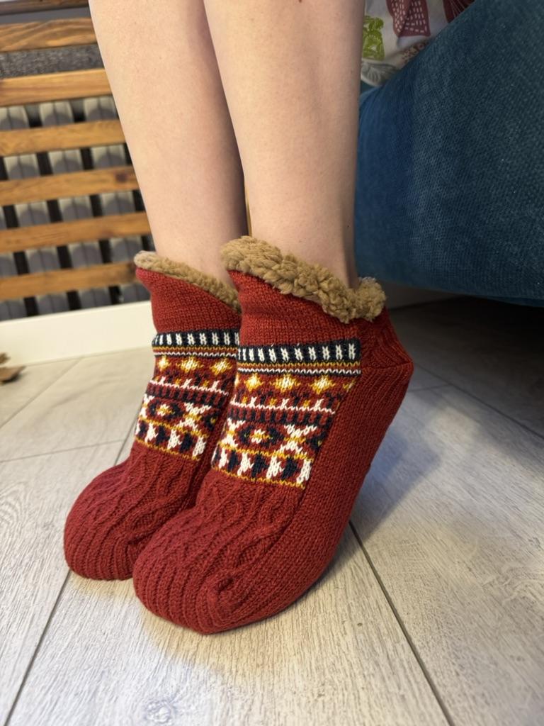 ❤️👍Мягкие носки-тапочки с мехом внутри Недавно приобрела носки-тапочки с коричневым мягким мехом внутри, и они просто чудо! Первое, что радует — невероятный комфорт. Внутренний мех мягкий, приятный на ощупь, буквально обволакивает ступни теплом. Они идеальны для холодного времени года, когда хочется, чтобы ногам всегда было тепло и уютно. Силиконовые точечки на подошве — отдельный плюс. Они не дают скользить по полу, что особенно важно для ламината или плитки. Носки сидят плотно, но не давят. Дизайн тоже радует: черный цвет выглядит стильно и универсально, легко сочетается с домашней одеждой. Качество пошива на высоте — швы аккуратные, нигде ничего не торчит. ❤️👍Однозначно рекомендую всем, кто ищет уютный и практичный вариант для дома.