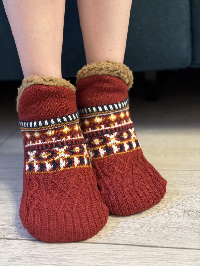 Носочки мне понравились, внутри мягонькие. приятные. похоже на искуственный мех. На подошве снаружи круглые кнопочки. чтоб не скользить по полу. Но маломерки: брала 40-40 на 38. Общее впечатление хорошее, буду ещё заказывать в подарок родственникам.