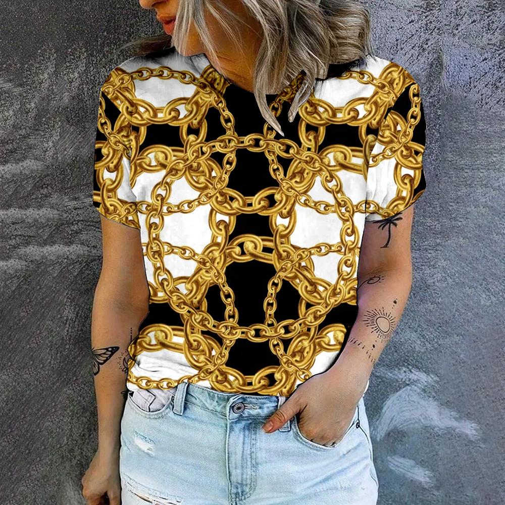 Женская футболка с принтом в стиле ретро с золотым ожерельем Футболка с модной популярной одеждой Футболка большого размера Летняя женская футболка с круглым вырезом