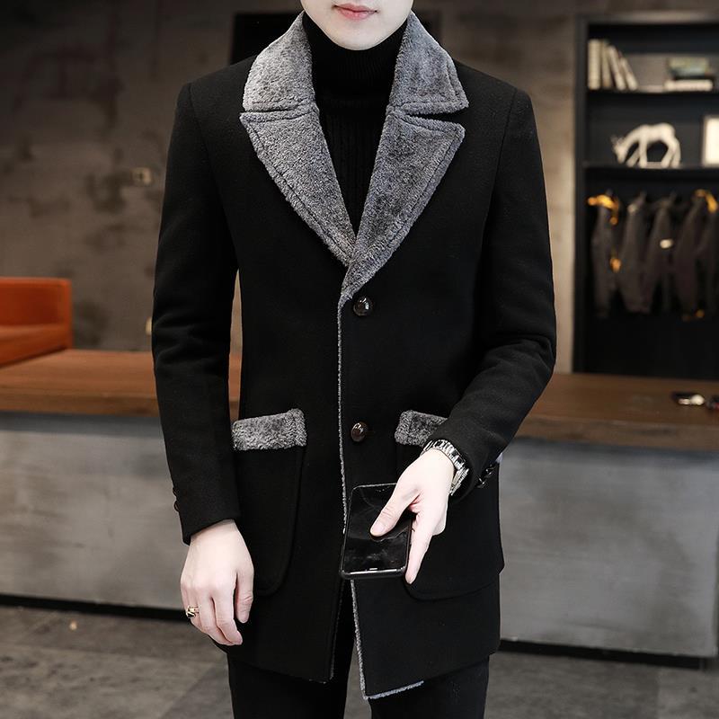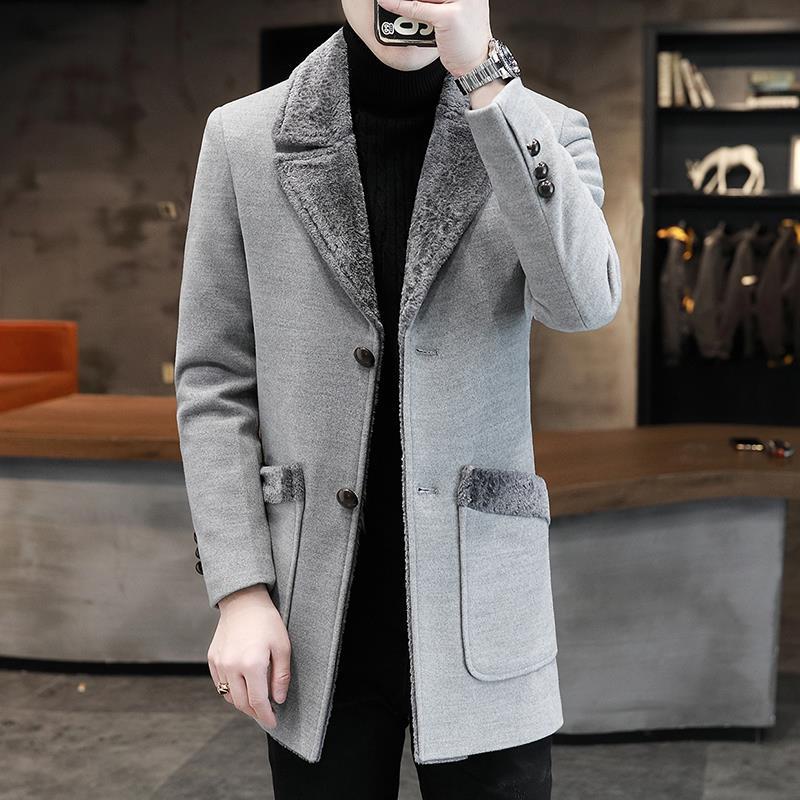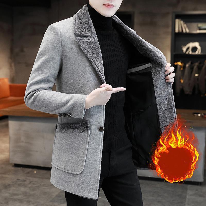 Стильная мужская верхняя одежда, однобортная, моющаяся, толстая, с отложным воротником, шерстяная куртка, супермягкий мужской тренчкот для работы
