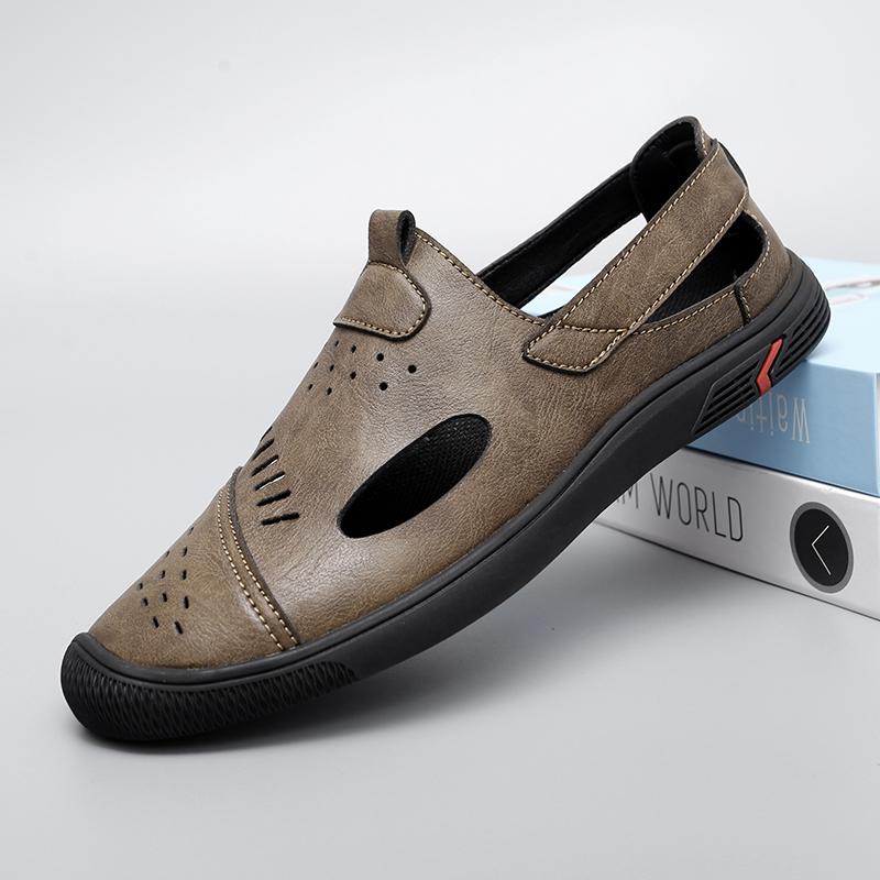 Модные новые летние повседневные кожаные сандалии ручной работы для мужчин, удобные пляжные туфли для отдыха на открытом воздухе, дышащие, открытые, на плоской подошве, дизайнерские мужские легкие мокасины — купить товар онлайн с бесплатной доставкой по всему миру!