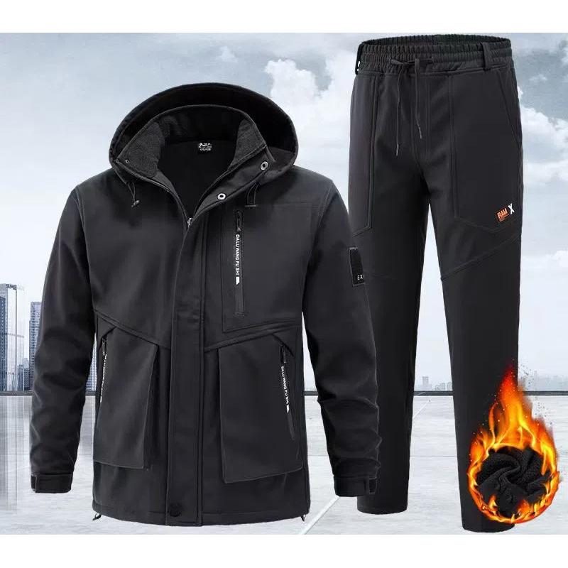 Мужской утепленный альпинистский комплект для зимнего отдыха, большой размер, спортивный рабочий костюм, куртка + брюки, комплект из 2 предметов