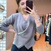 Стильный нерегулярный перекрестный кардиган с V-образным вырезом, осенний свитер, женский кардиган с длинным рукавом, женские вязаные свитера, зимние однотонные облегающие повседневные кардиганы 25308