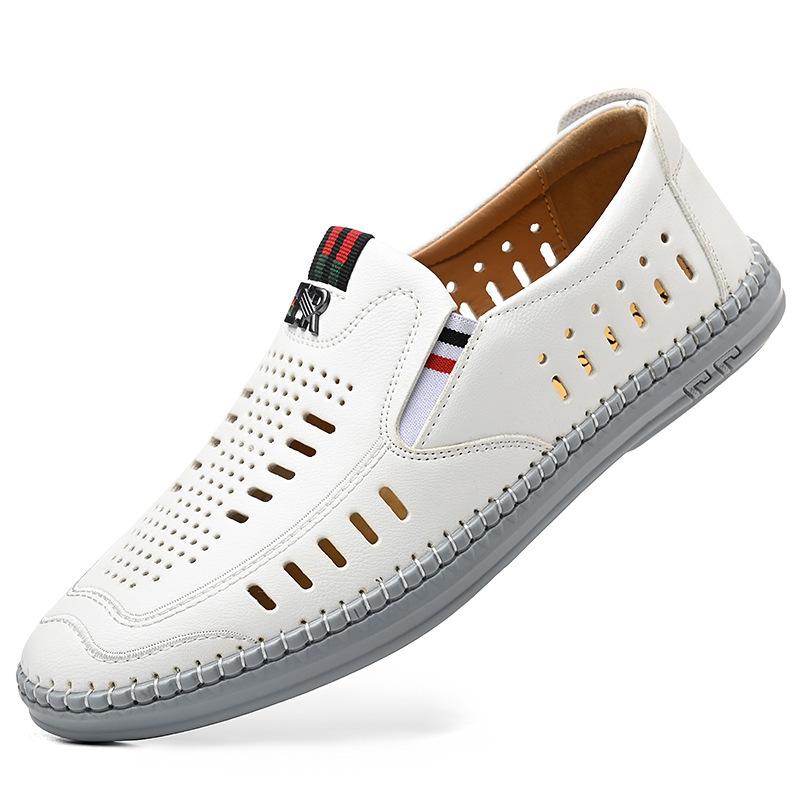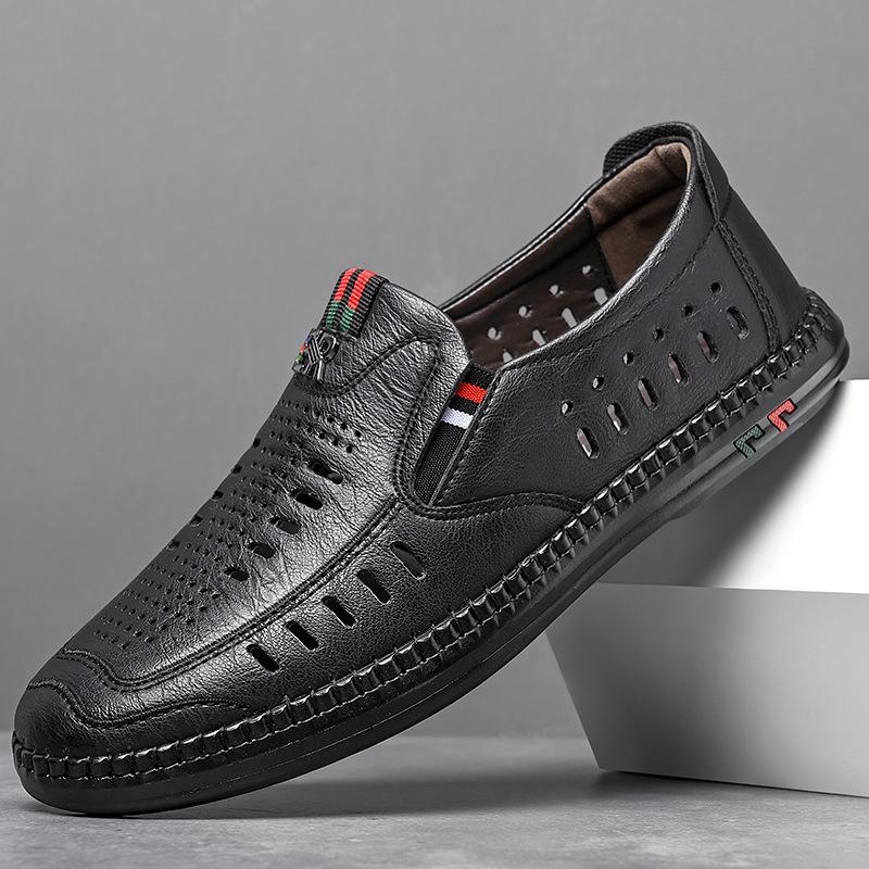 Мода 2024 Лето Новые кожаные сандалии Мужская мода Дышащая мягкая подошва Выдолбленные мужские туфли Дизайнерские повседневные мужские туфли
