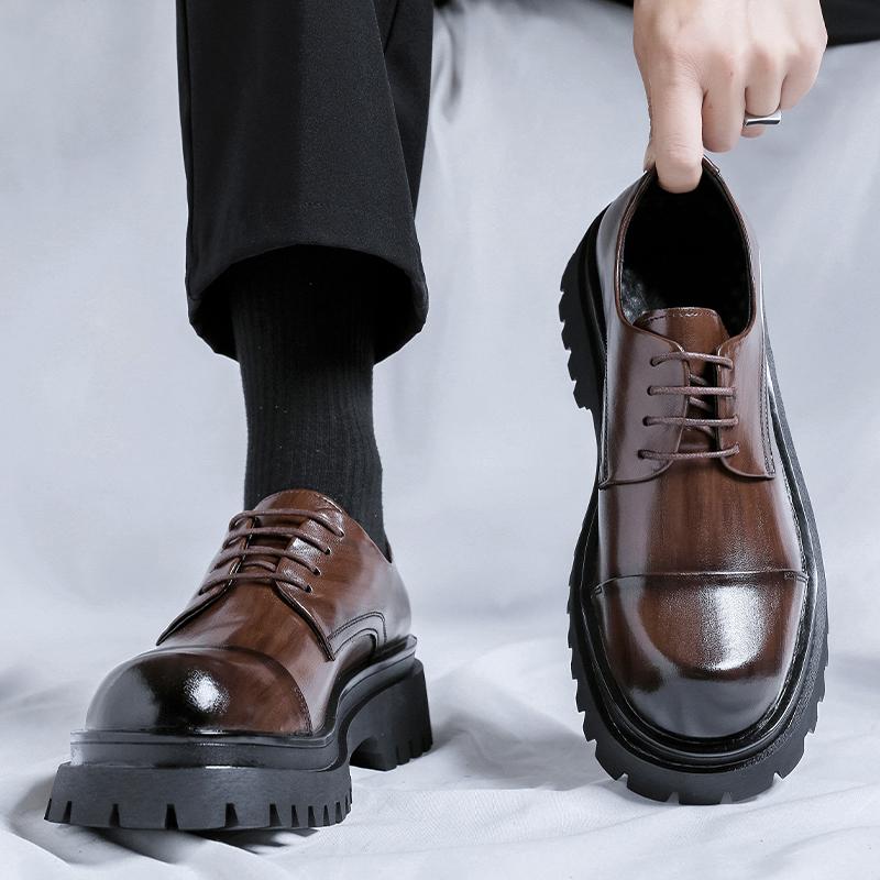 FashionMen черные модные кожаные мужские туфли на платформе классические модные туфли на шнуровке увеличение деловые офисные туфли кожаные туфли