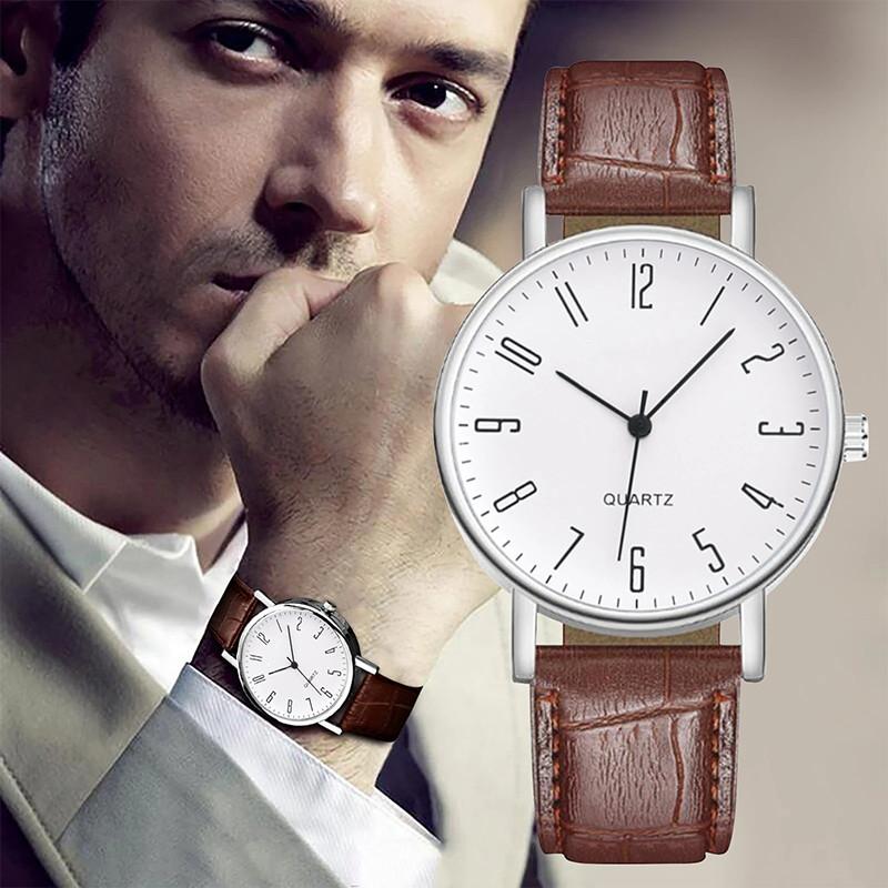 Модные унисекс модные часы мужские кварцевые часы с цифрами браслет повседневные деловые ультратонкие мужские кожаные ремни