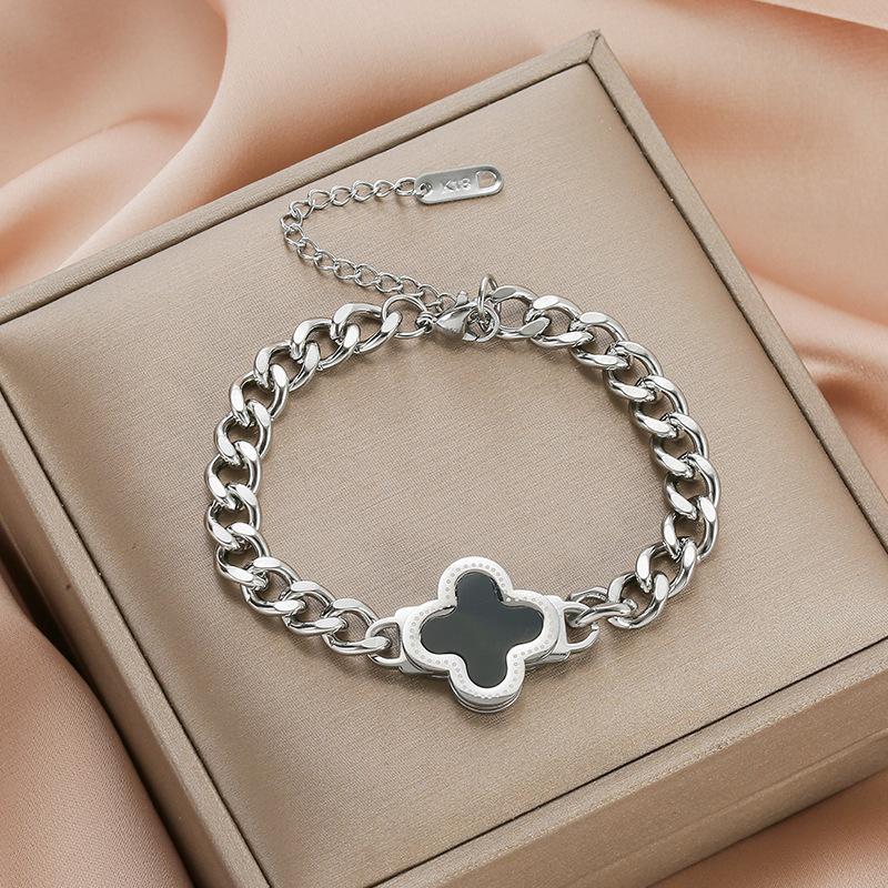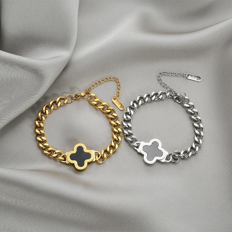 Классический браслет из ракушек с четырьмя листочками клевера для женщин, модный браслет из титановой стали, персонализированные толстые цепочки в стиле хип-хоп
