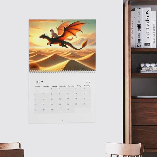 Организуйте свое время и добавьте немного фантазии в свое пространство с нашим настенным календарем на 2025 год.. Планируйте свой год вперед, оставив достаточно места для важных дат, встреч и напоминаний.. Уникальный дизайн Cat Dragon Ride выделяет этот календарь среди других, поскольку на нем изображены очаровательные кошки и драконы, которые привнесут игривое очарование в любую комнату..