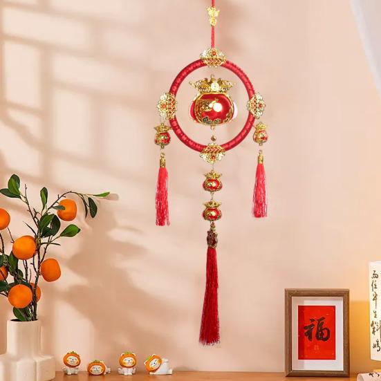 Отпразднуйте китайский Новый год стильно с этой изысканной новогодней подвеской.. Яркий красный цвет символизирует удачу, везение и богатство, а замысловатый дизайн включает в себя различные аксессуары, символизирующие процветание.. Изготовленный из высококачественной мягкой ткани, этот кулон тщательно сшит для долговечности и украшен длинными кисточками для придания элегантности.. Повесьте его в любом месте дома или на новогодней вечеринке, чтобы придать праздничную атмосферу.