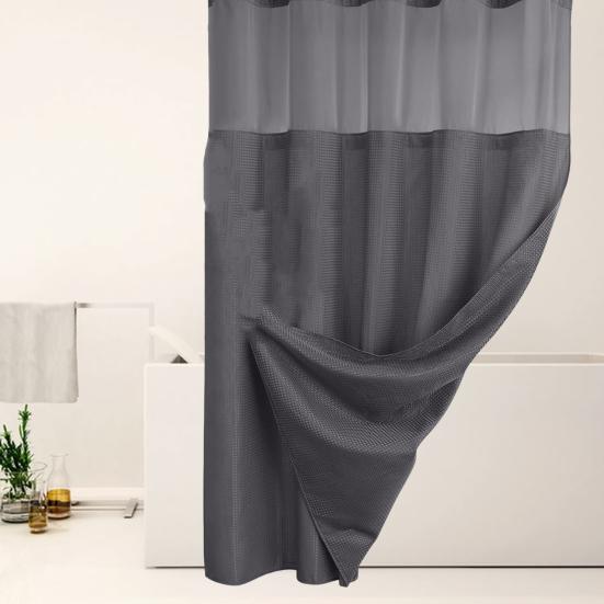 Видение отеля и спа: Превратите обстановку в вашей ванной комнате в атмосферу роскошного отеля с помощью этой вафельной занавески для душа без крючков и подкладки на кнопках, которая подарит вам удовольствие, подобное спа-процедурам, каждый раз, когда вы принимаете душ.