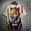 Летняя мужская мода повседневный принт мужской кот воин страж с ножом художественный принт капюшон футболка круглый вырез уличная футболка топ