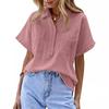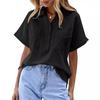 Женская однотонная рубашка-пуловер с короткими рукавами и двумя карманами, свободная рубашка из хлопка и льна, блузки и рубашки