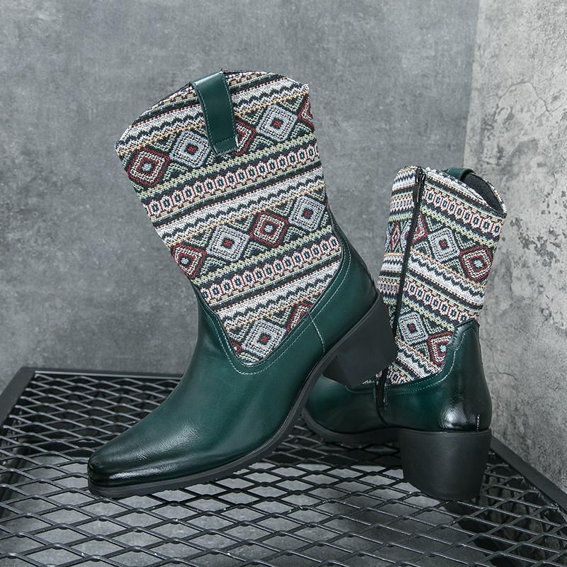 Модные классические джинсовые ботинки в стиле вестерн, мужские туфли челси, остроносые зимние мужские туфли с высоким верхом, модные зеленые туфли на высоком каблуке