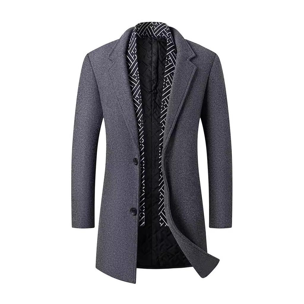 Осенне-зимнее мужское шерстяное пальто в деловом стиле, модный съемный шарф, средние и длинные модели увеличены и утолщены.