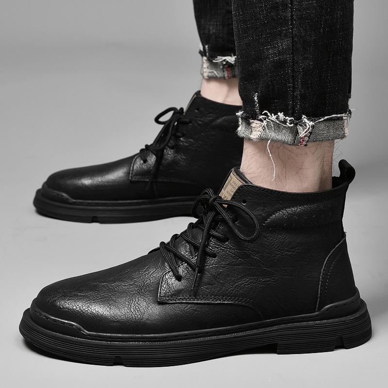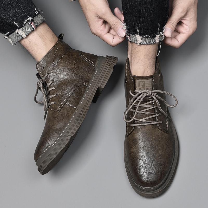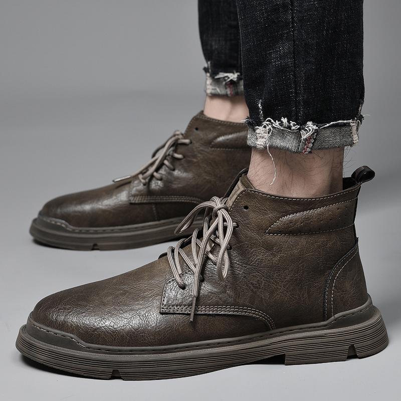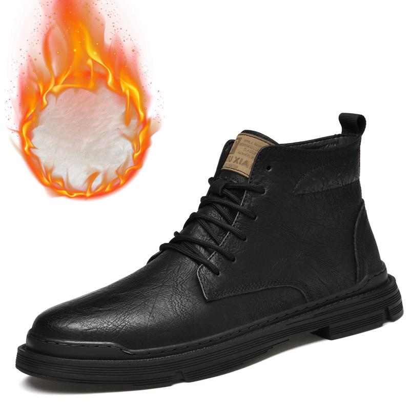 Мода 2024 Зима Новые мужские высокие хлопковые туфли Высококачественные брендовые бархатные теплые повседневные модные ботинки среднего размера Коричневые мужские туфли