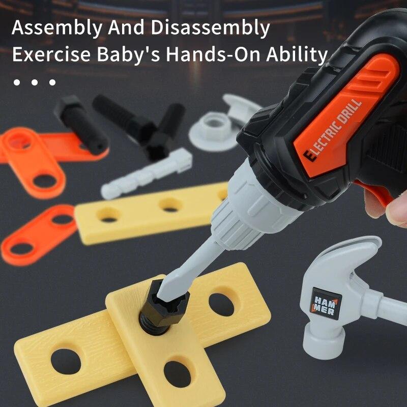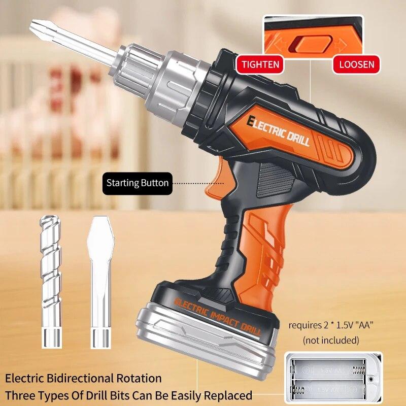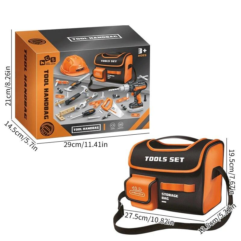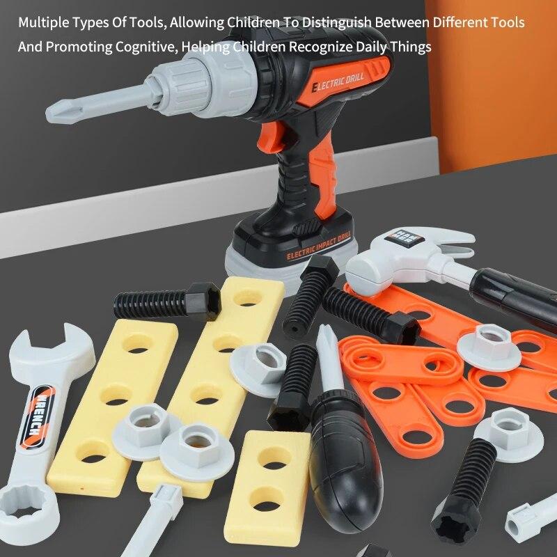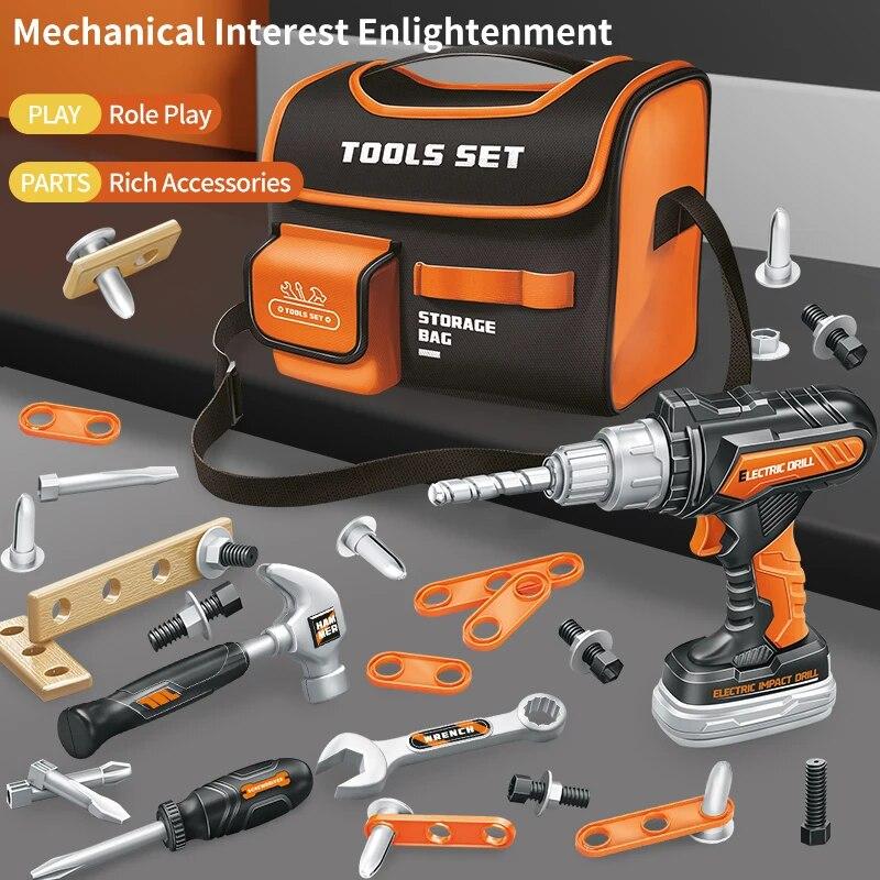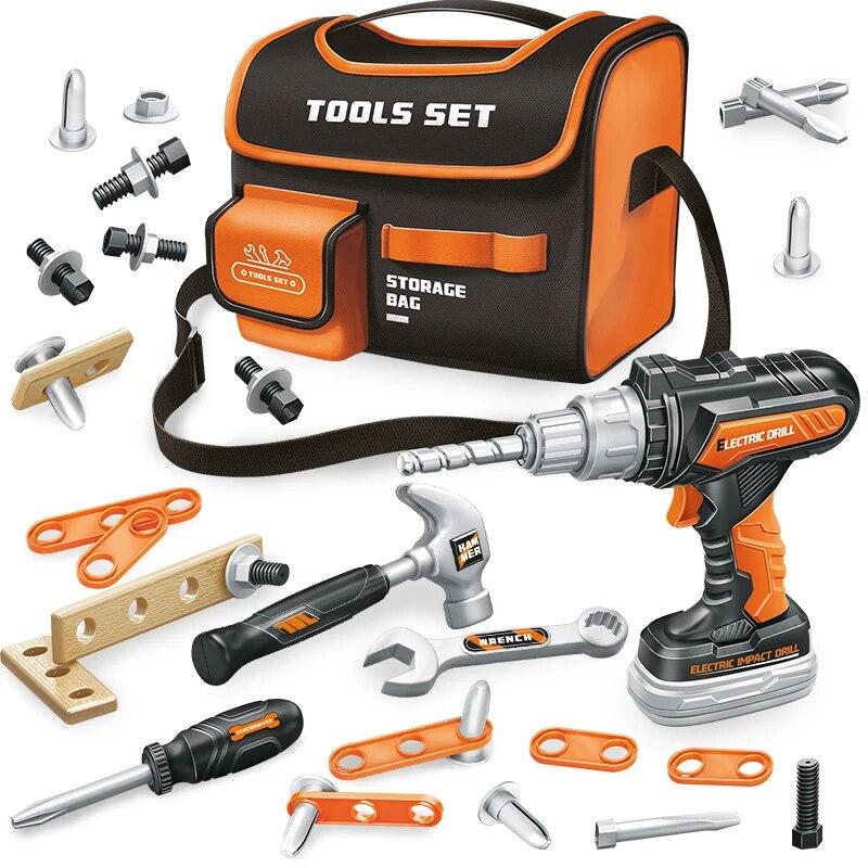 Детский набор инструментов для мальчиков, набор инструментов для малышей с детской сумкой для инструментов и электронной игрушечной дрелью, строительные ролевые игры для детей