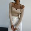 Осенне-зимний женский эластичный облегающий свитер с длинными рукавами и квадратным вырезом без бретелек, однотонный трикотажный низ рубашки, топы для женщин — купить товар онлайн с бесплатной доставкой до всему миру!