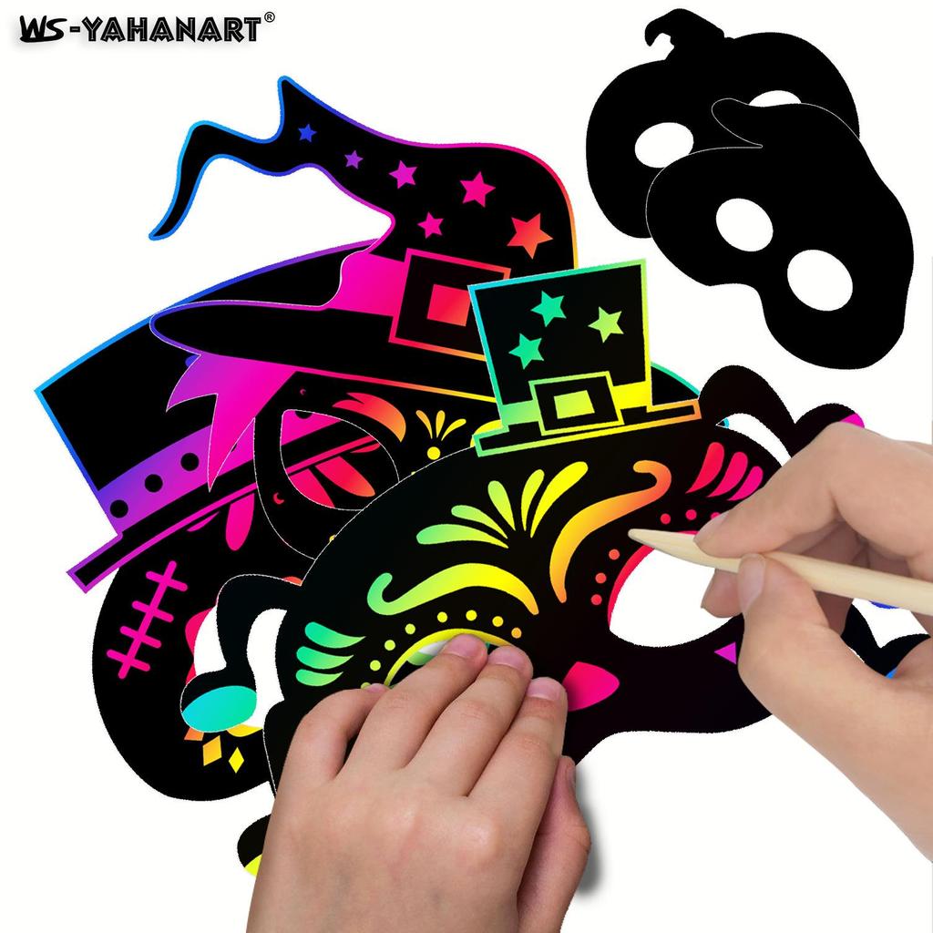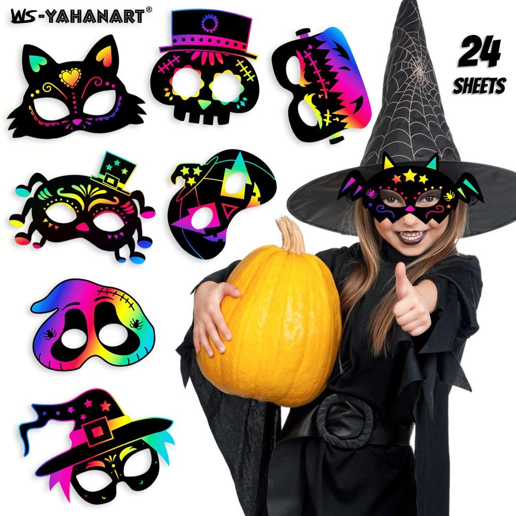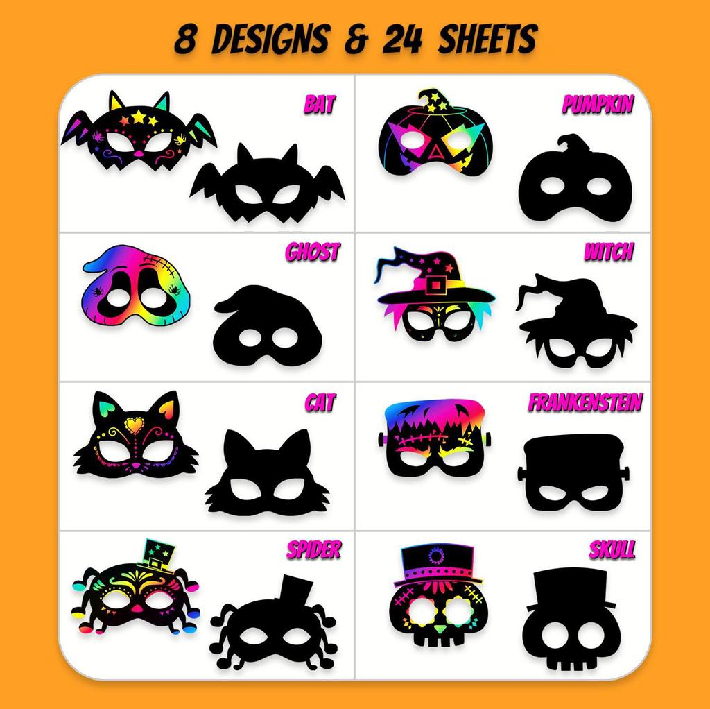 Цвет и размер8 Halloween Mask Scratch Cards – как на картинке