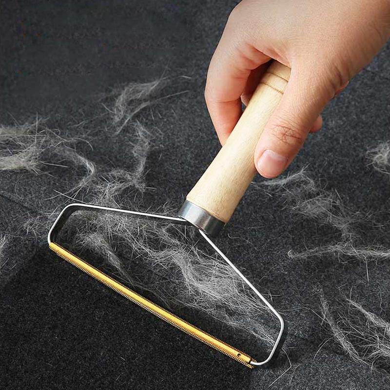 Многоразовая двусторонняя портативная щетка для удаления волос с деревянной ручкой для одежды и мебели