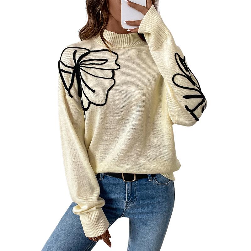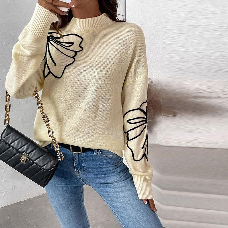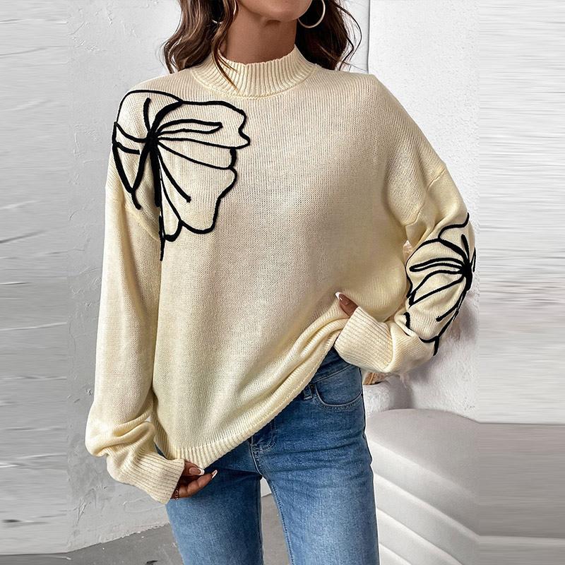 Женский свитер осень-зима с вышивкой в виде большого цветка, простой повседневный свитер для пожилых людей с полувысоким воротником