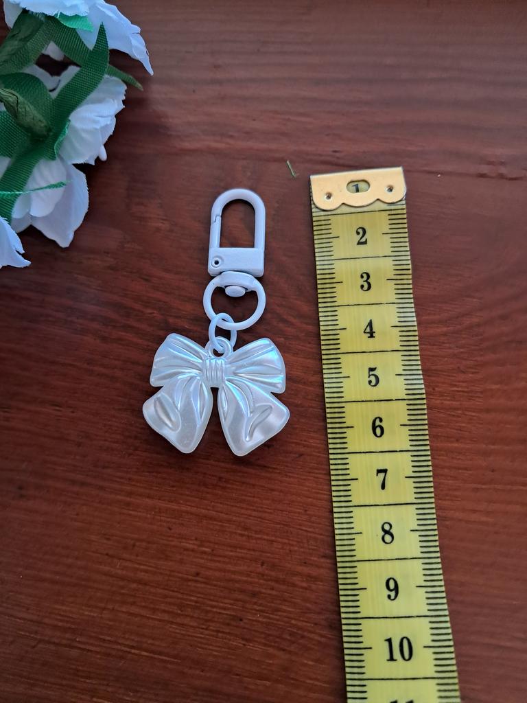 Милый, не большой брелок. Заказываю уже второй такой бантик, первый потеряла, даже поносит его не удалось. Покупала за 94 руб.