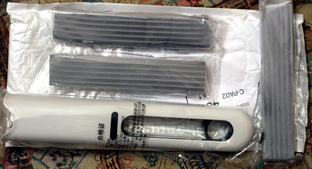 Доставка отличная. Подарочек положили к двум комплектам дополнительную насадку. Спасибо. За это 10 звëзд. А вот качество уборки так себе. 1 - Насадку на фото и то, что прислали в заказе - совершенно разные вещи! Мне прислали какие-то тощие прямоугольные кусочки, которые даже не прикрывают полностью подошву швабры. Подошва царапает протраемую поверхность, т.к.насадка не закрывает её полностью. 2 - На стëклах и зеркалах остаются разводы, будто маслянистой салфеткой растирали. 3 - Для других поверхностей, во избежание скопления влаги, насадку нужно отжимать руками, в противном случае остаются водяные полоски. Жаль. Я возлагала большие надежды на эту вещь. Возможно, летом для мытья машины она найдёт своё место применения. А пока, увы, только три звезды. Да и то я расщедрилась за быструю доставку. А в целом - деньги на ветер.