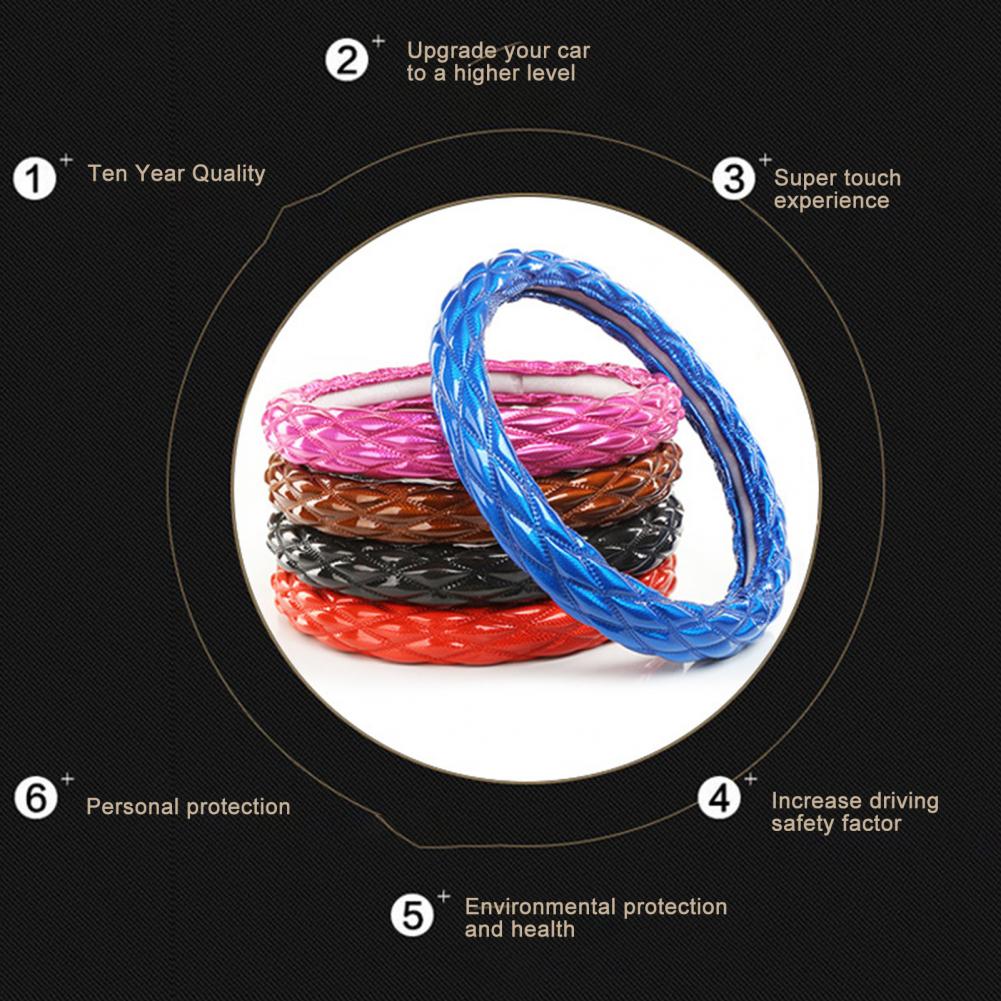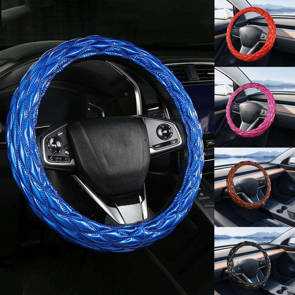 Универсальный чехол на руль автомобиля с металлической полосой и противоскользящим узором, чехлы из искусственной кожи для рулевого колеса автомобиля диаметром 37–38 см