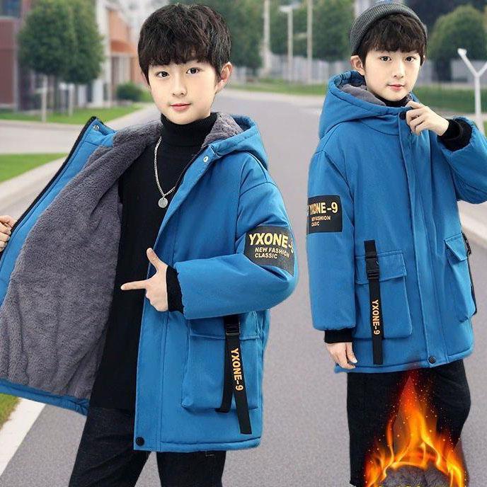 Мальчики осень и зима стеганая и утолщенная свободная теплая куртка в длинной верхней одежде с капюшоном
