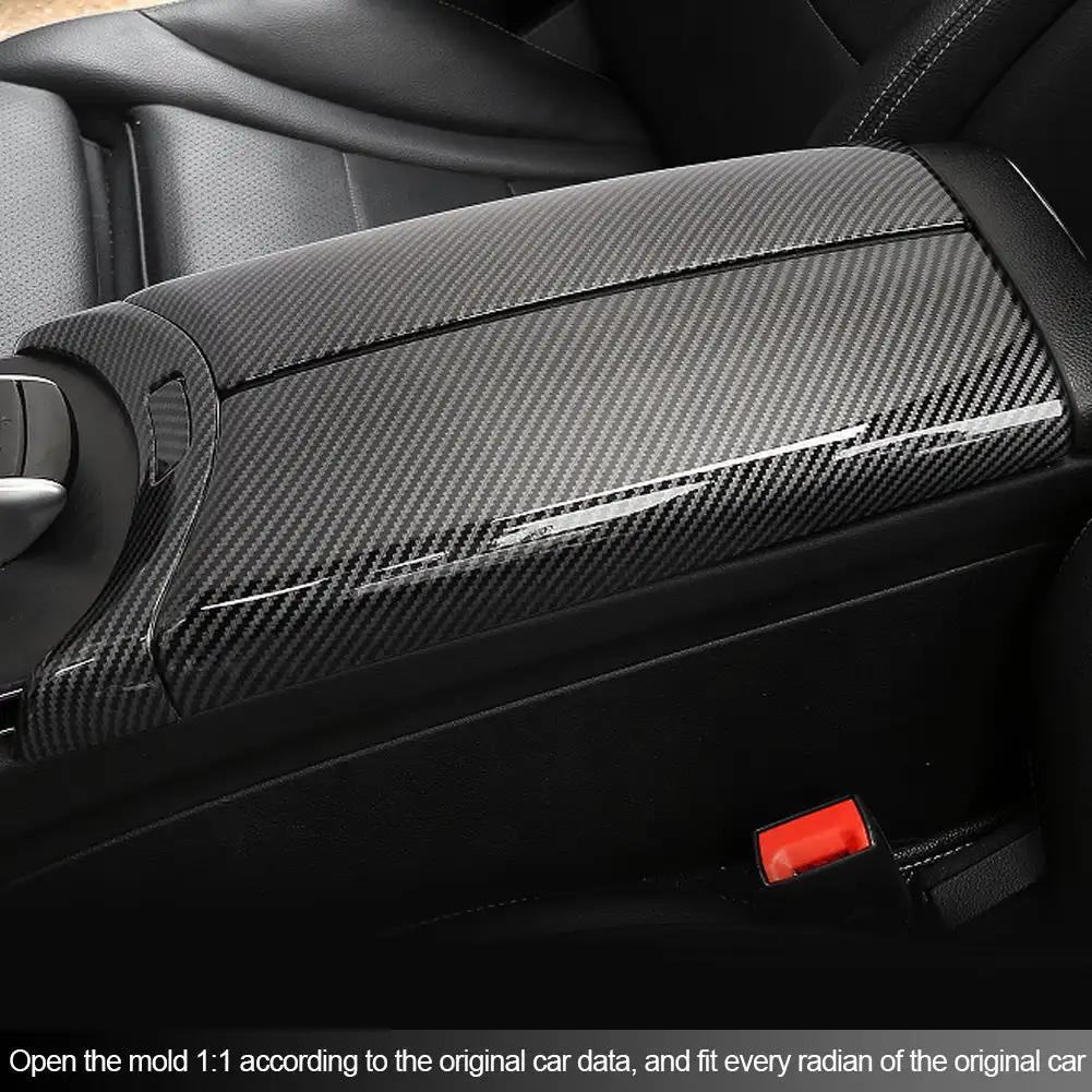 4 шт. карбоновый центральный подлокотник автомобиля коробка панель переключатель кнопка крышка аксессуары для интерьера для Mercedes Benz E GLC C класс W205