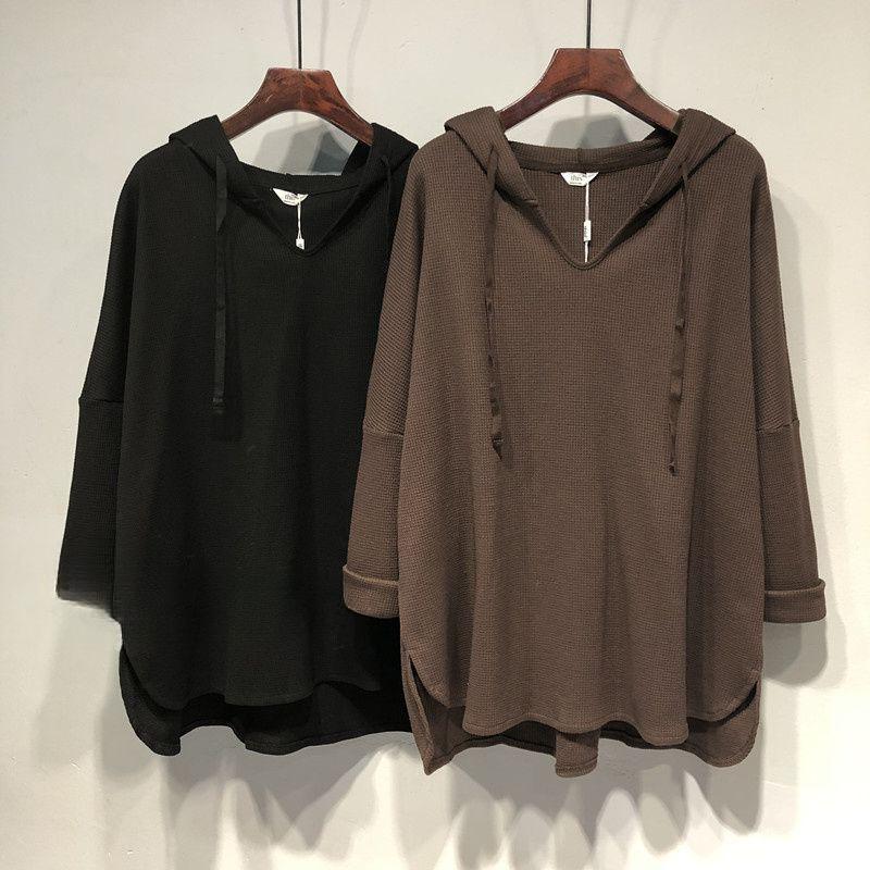 Женская футболка свободного кроя с капюшоном и V-образным вырезом, весна-осень, свободный топ средней длины — купить товар онлайн с бесплатной доставкой до всему миру!