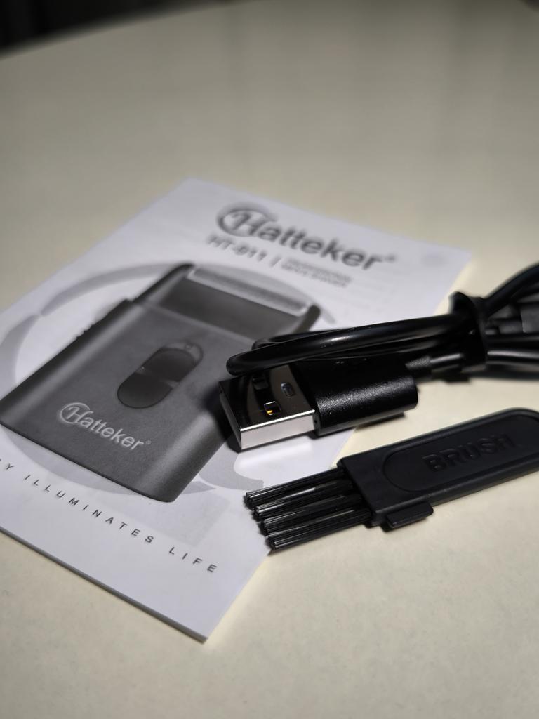 Электробритва Hatteker HT-911 Компактная и портативная. Помещается у меня на ладошке. Это очень удобно, ее всегда можно взять с собой в путешествие. Оснащенна триммером для бороды. Обеспечивает комфортное бритьё, без раздражений, не дёргает волосы. Бреет хорошо. Заряжается от USB. Кабель в комплекте. А также щёточка и инструкция. Время полной зарядки составляет 8 часов, а вот время работы около часа. Упакована в фирменную коробочку. Красивая подача. И сама бритва выглядит солидно. Отлично подойдёт на подарок. К тому же в магазине упаковка товара очень хорошая. Сразу видно, что продавец беспокоится о том, чтобы товар приехал в надлежащем виде. Хорошая, надежная. Цена на нее отличная! Рекомендую 🤗